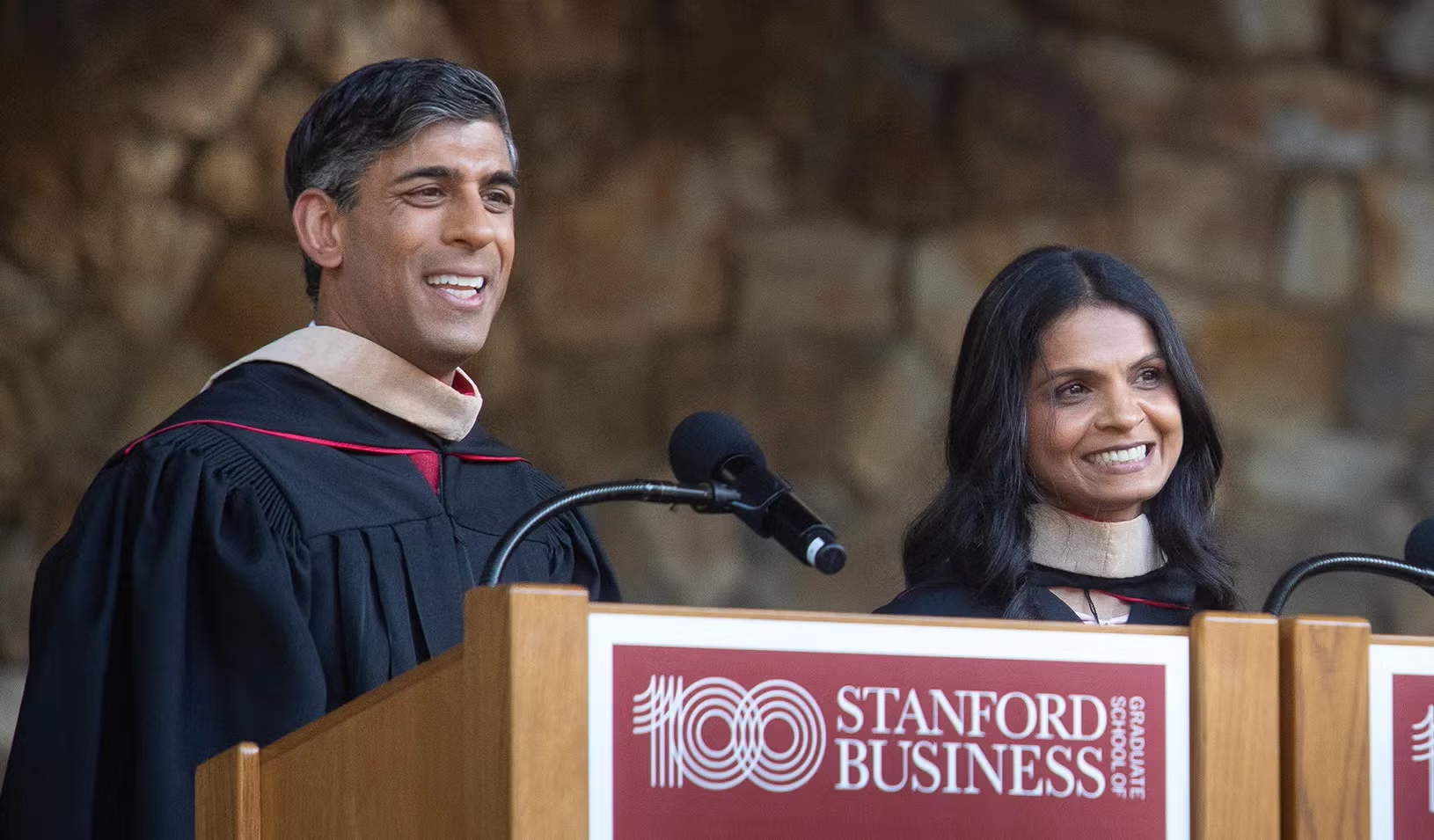 “在斯坦福商学院迎来百年校庆之际,我们还有一个想法。” Sunak说道,“我们是第一对住进唐宁街10号的斯坦福毕业生。但我和Akshata都希望,我们不会是最后一对走上关键时刻重要岗位的校友。因为世界需要像这里培养的全球领导者。”