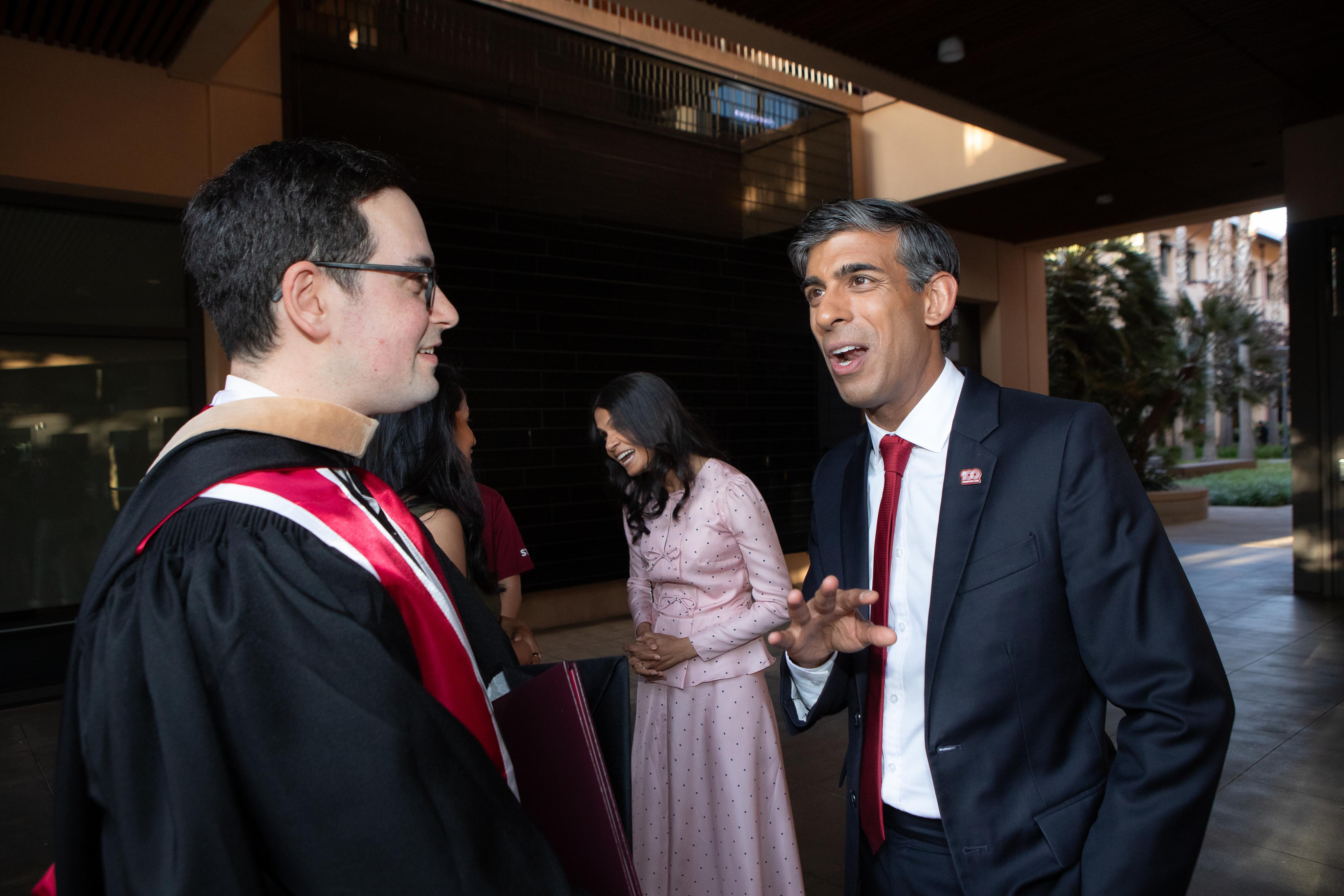 此次毕业典礼的演讲嘉宾是投资人和慈善家Akshata Murty和英国前首相、议员Rishi Sunak,两人均为2006年斯坦福商学院MBA校友。